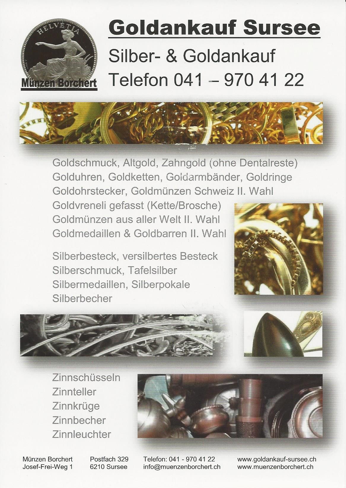 bei Ihrem kompetenten Ansprechpartner in Sursee/LU, für den Ankauf von Goldschmuck, Golduhren, Schweizer Silbergeld, Münzen & Goldmünzen, Goldmedaillen, Goldvreneli, Goldbarren, Schützentaler, Schützenmedaillen, sowie Altgold.